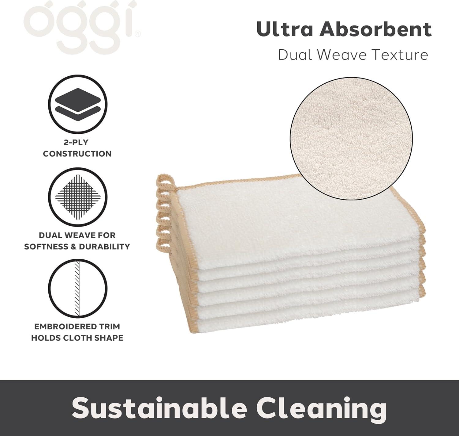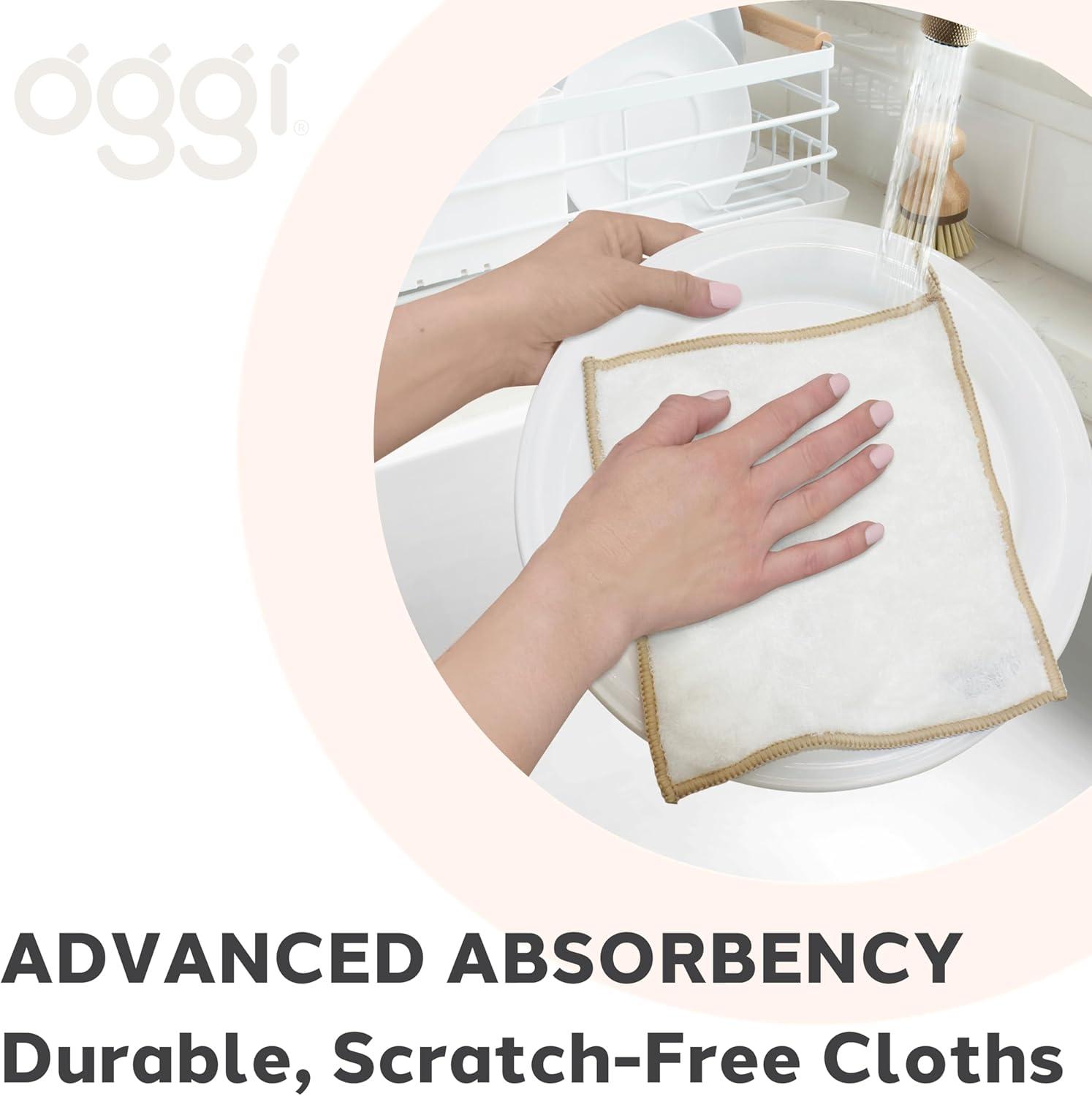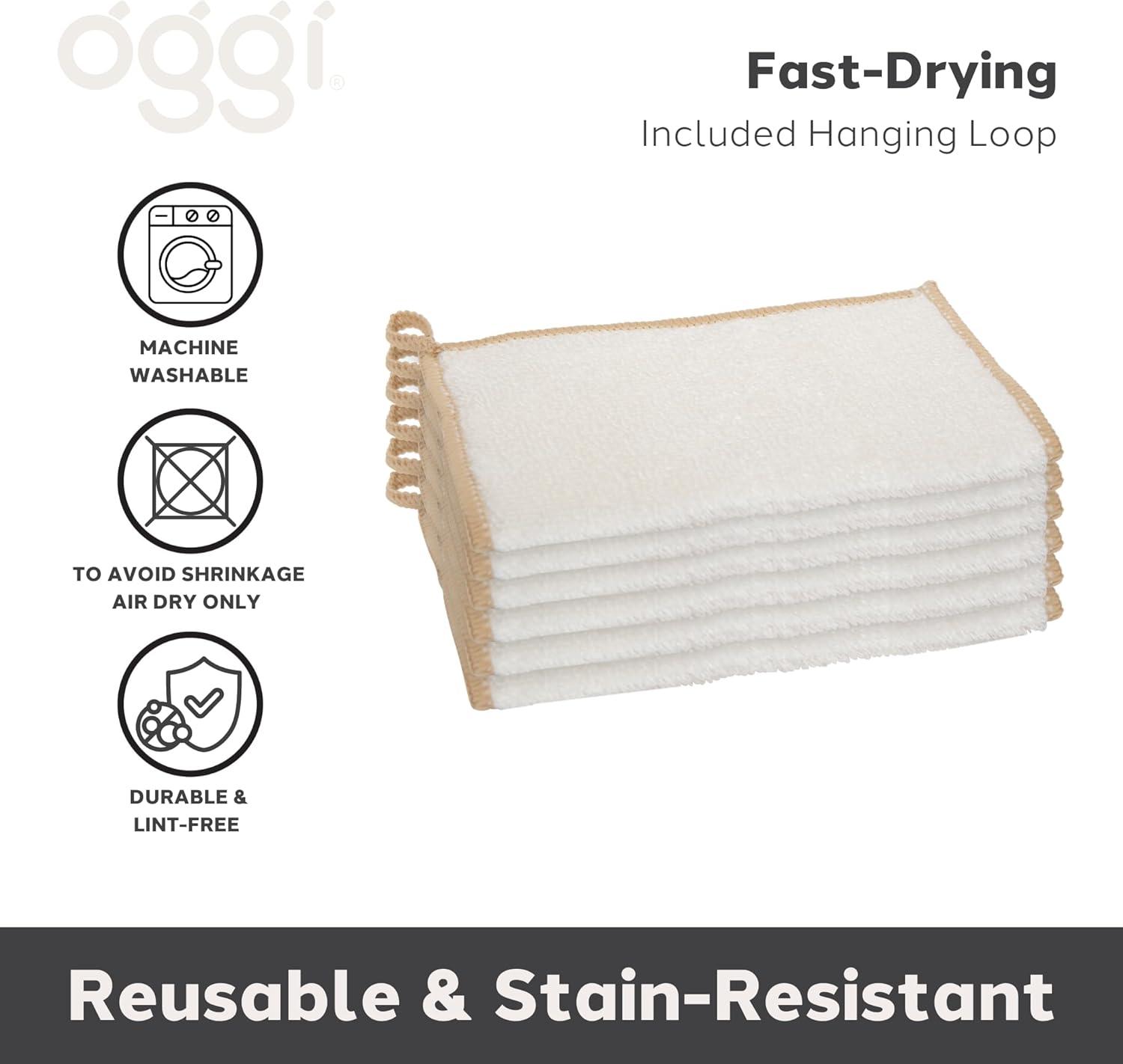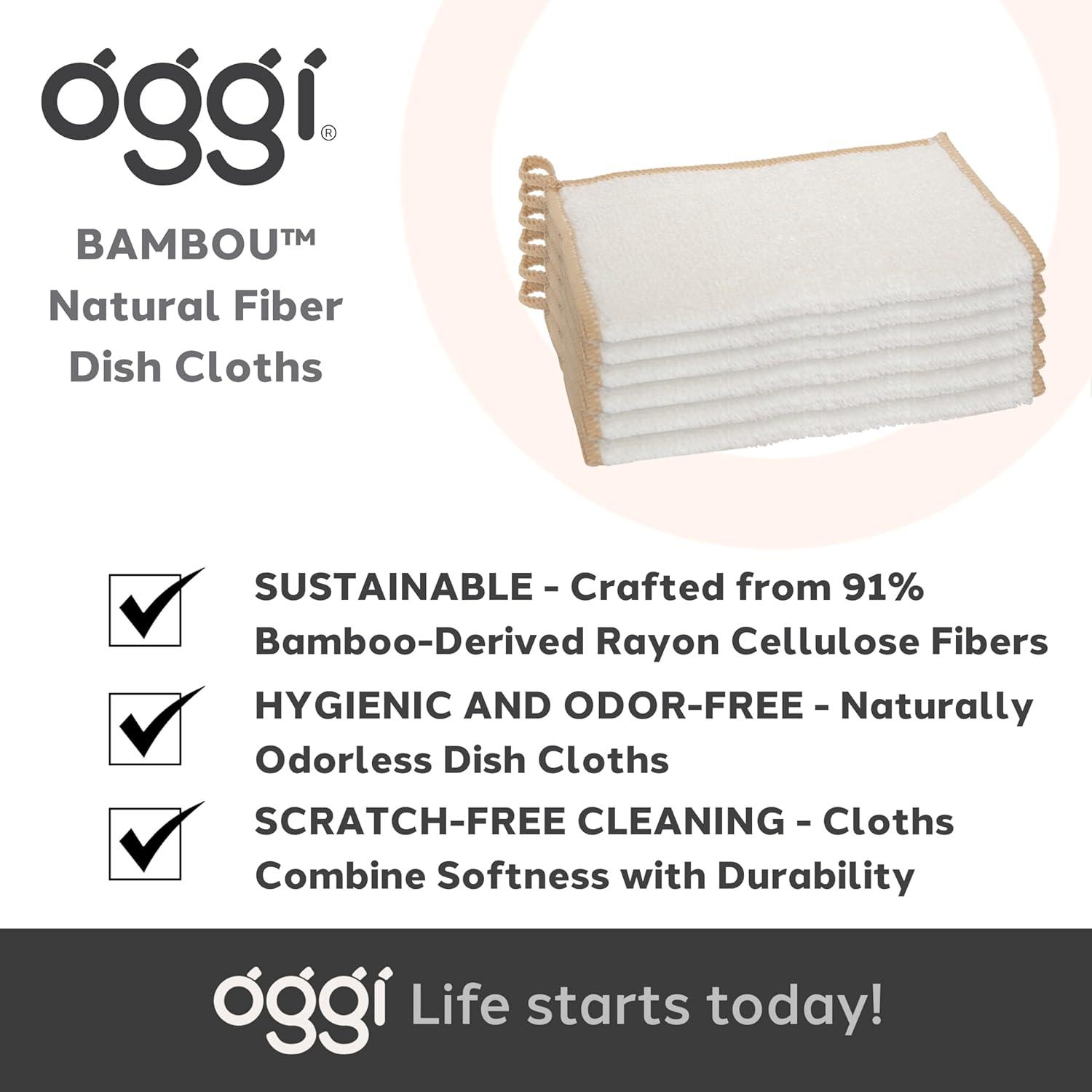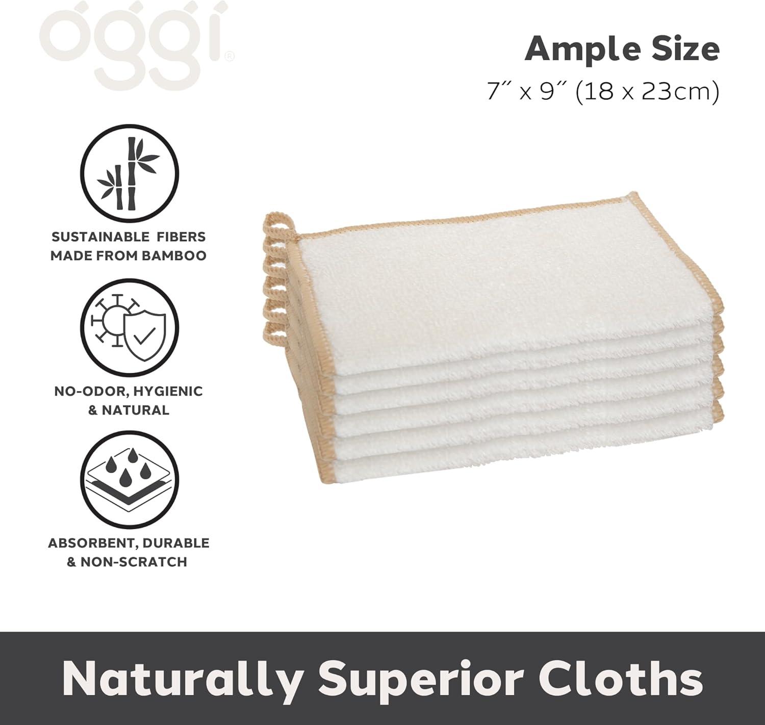 Oggi Bambou Odor-Free Kitchen Washcloths - Natural Kitchen Dish Cloths, 91% Natural Rayon Cellulose Fiber, Reusable, Absorbent, Hygienic, Fast Dry, Durable, Non-Scratch, Lint-Free - 6 pcs, 7x9