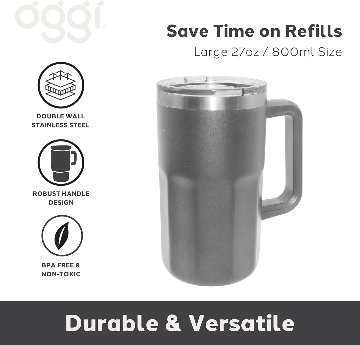 imageOggi Insulated Beer Mug with Handle  Ideal Large Stein Insulated Mug Beverage Glass Beverage Mugs Beer Glasses Beer Glass with Handles Large Stein Oktoberfest  27oz  08ltGray