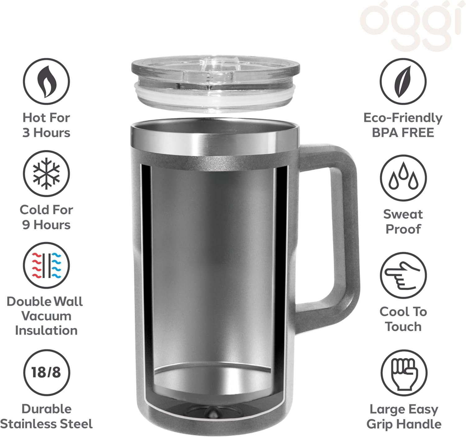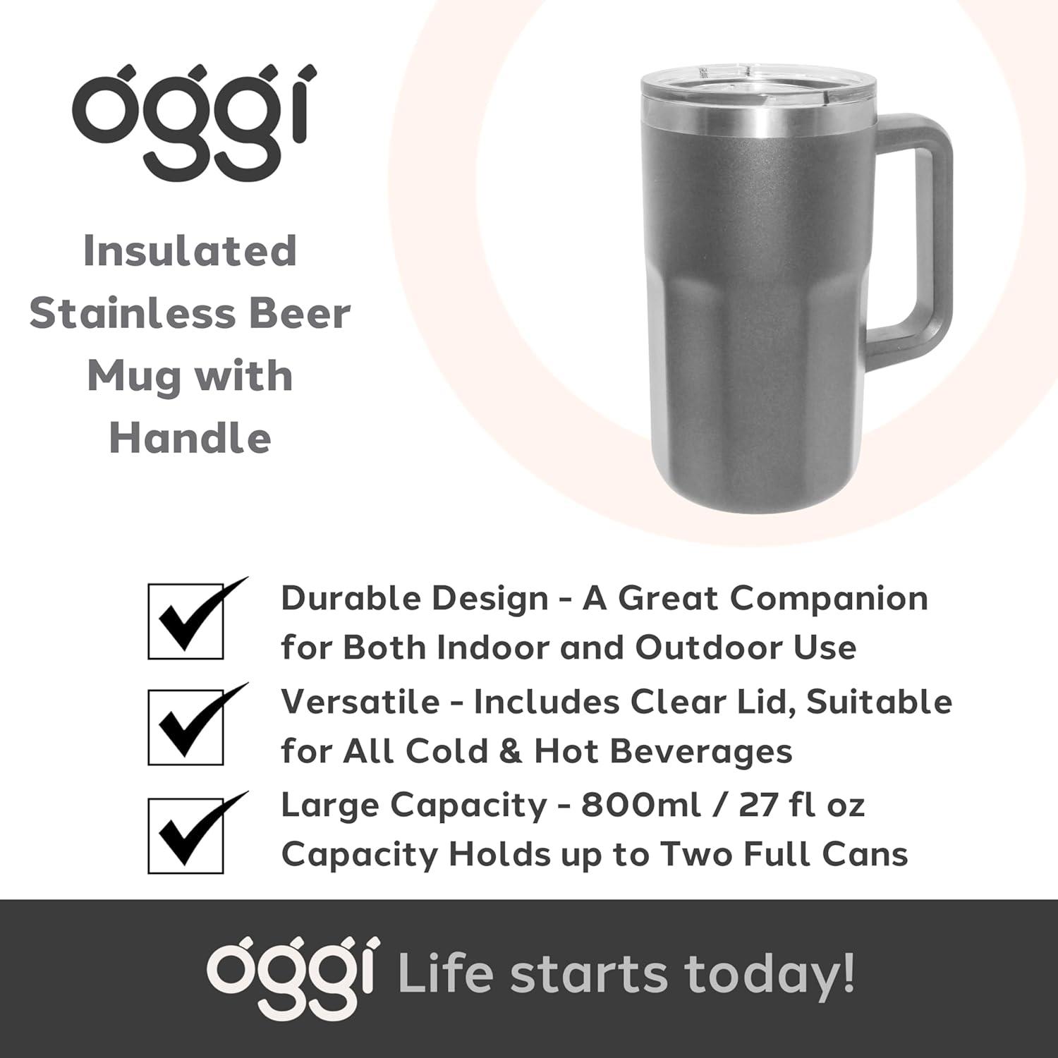 TEMPERATURE CONTROL: Featuring advanced vacuum-insulated double-wall technology, this stainless steel beer mug keeps your beverage chilled for up to 20 hours, ensuring your last sip is just as refreshing as the first. The Oggi stein mug is also versatile enough to keep drinks hot for up to 1 hour, making it ideal not only for beer but for any beverage you want to maintain at the perfect temperature.