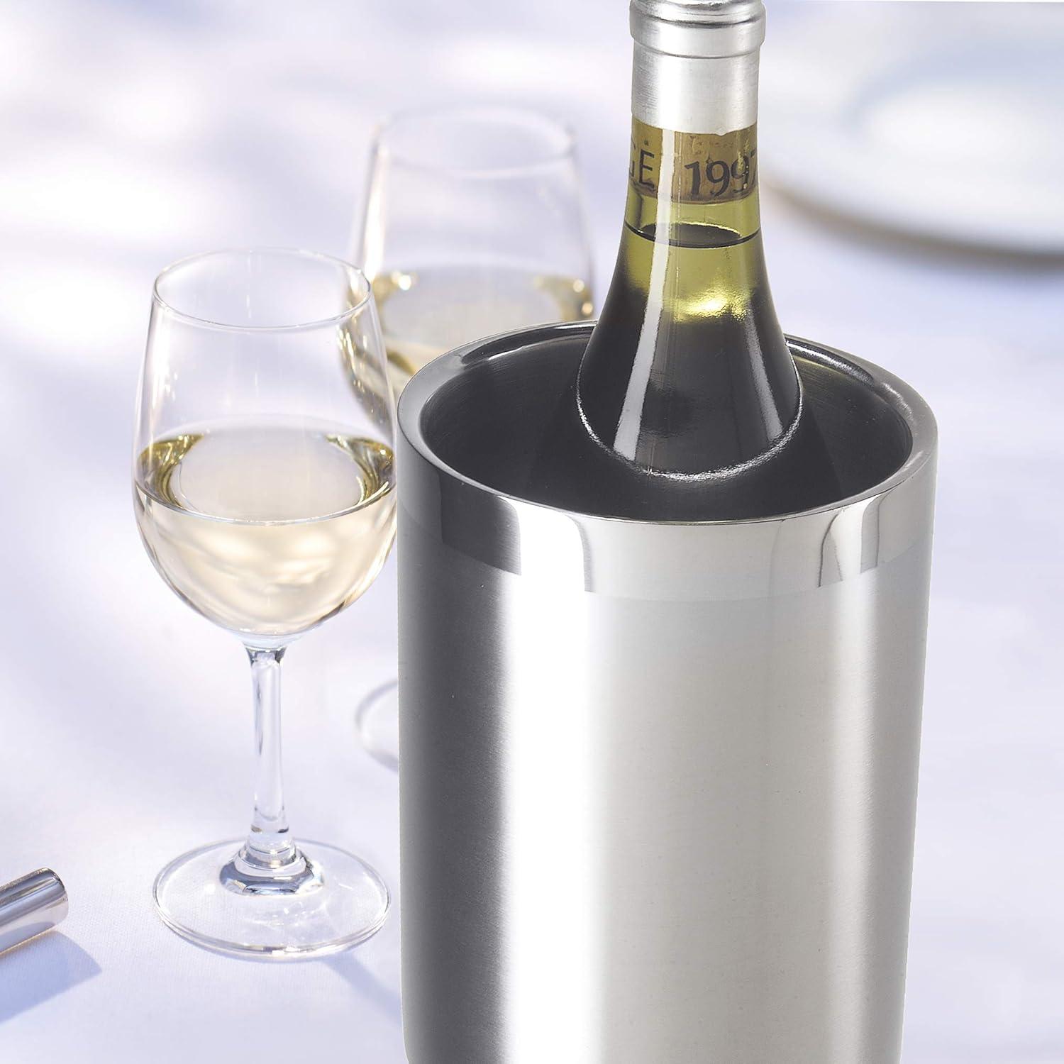 INSULATED WINE COOLER BUCKET: A double wall construction provides insulation so that your white wine or champagne remains at its proper serving temperature longer. Also keeps red wine at a perfect cellar temperature for longer