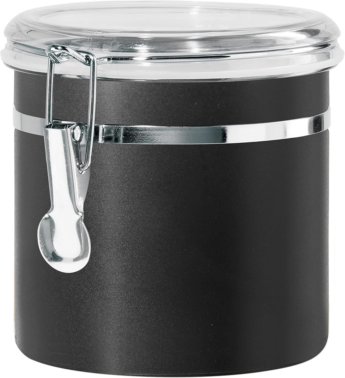Oggi Stainless Steel Kitchen Canister 47 fl oz, Black - Airtight Clamp Lid, Clear See-Thru Top - Ideal for Kitchen Storage, Food Storage, Pantry Storage. Large Size 5" x 6".(Black)
