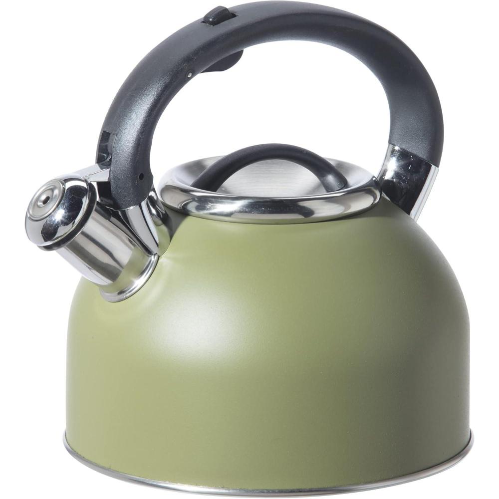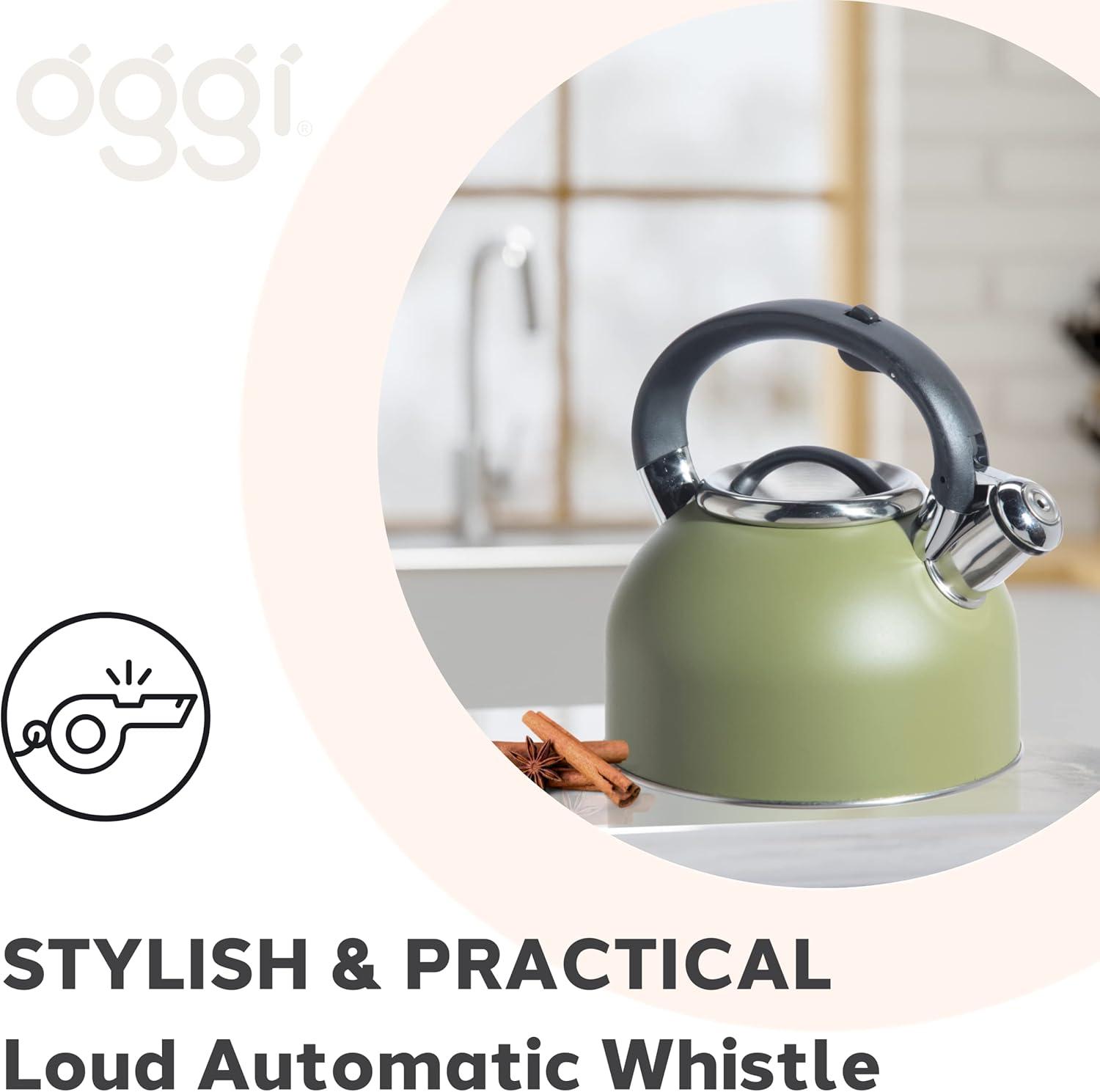 imageOGGI Tea Kettle for Stove Top  64oz  19lt Stainless Steel with Loud Whistle Ideal Hot Water Kettle and Water Boiler  Silver MirrorOlive